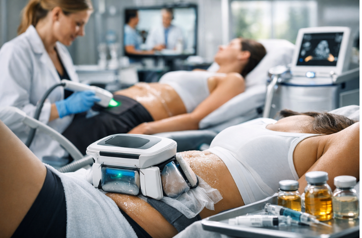 Another treatment that is innovative and dissolves fat cells with injectable solutions is injection lipolysis. These injections are specifically targeted towards and destroy the stubborn fat that is then taken up by the body naturally.